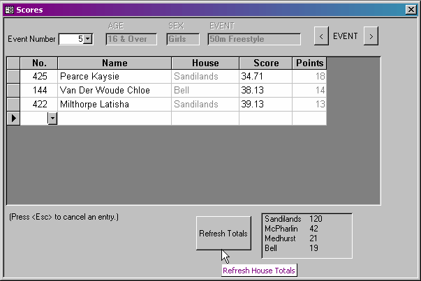 Enter scores in real-time at your carnival, using a screen designed to look like a score card. Points are automatically calculated and House totals displayed on the same screen.